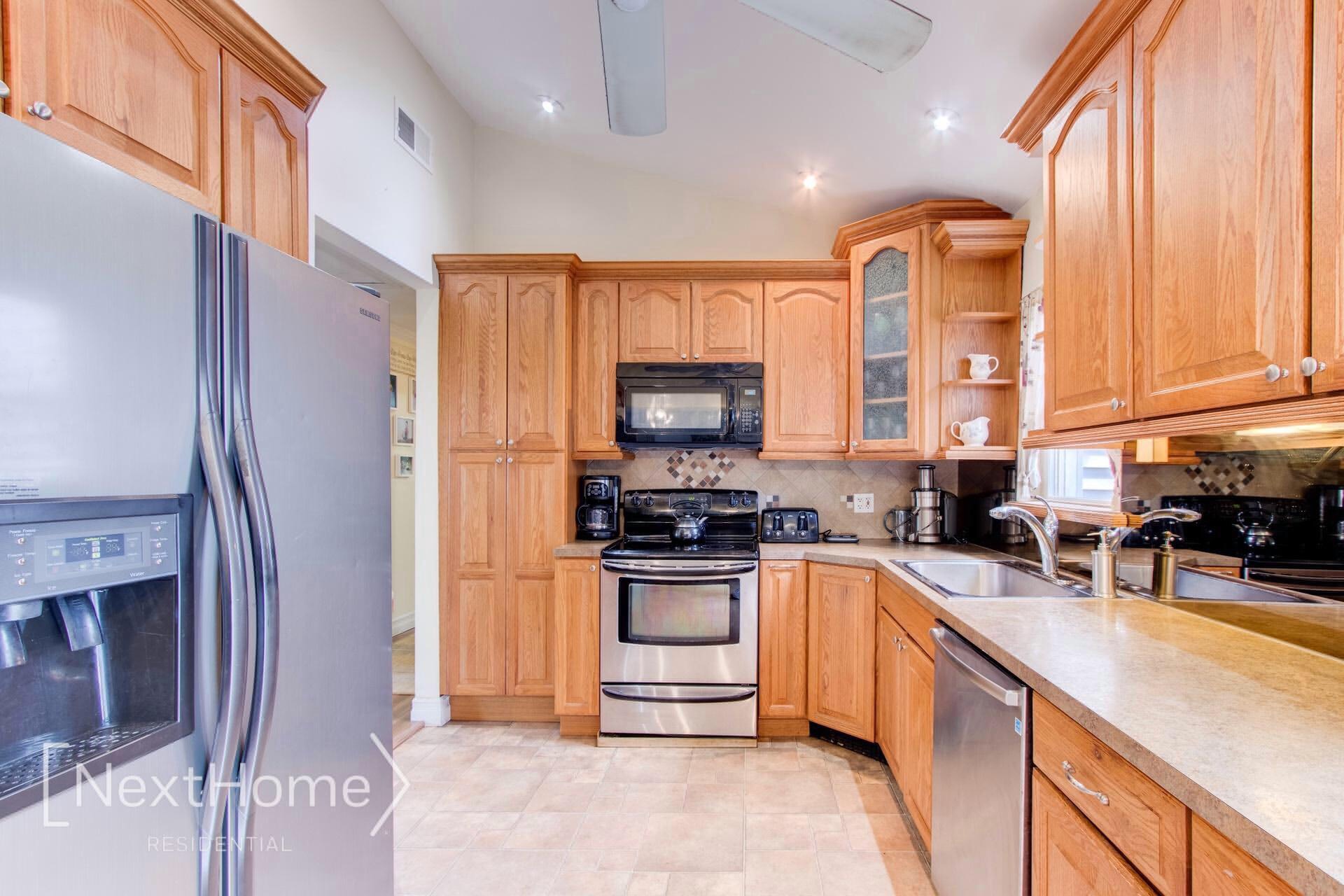 This updated ranch, with double-wide driveway and two-car garage complete with finished basement, may just be your NextHome! Located on a sought after quiet dead-end street, the first thing you will notice upon entering the residence is a bright living room that immediately makes you feel at home. Walking past the living room, you enter a generous dining room with vaulted ceiling and adjacent eat-in-kitchen, separated by a wonderful breakfast bar peninsula. Should you wish to enjoy some sun, the expansive backyard is accessible directly from the kitchen through sliding glass doors.